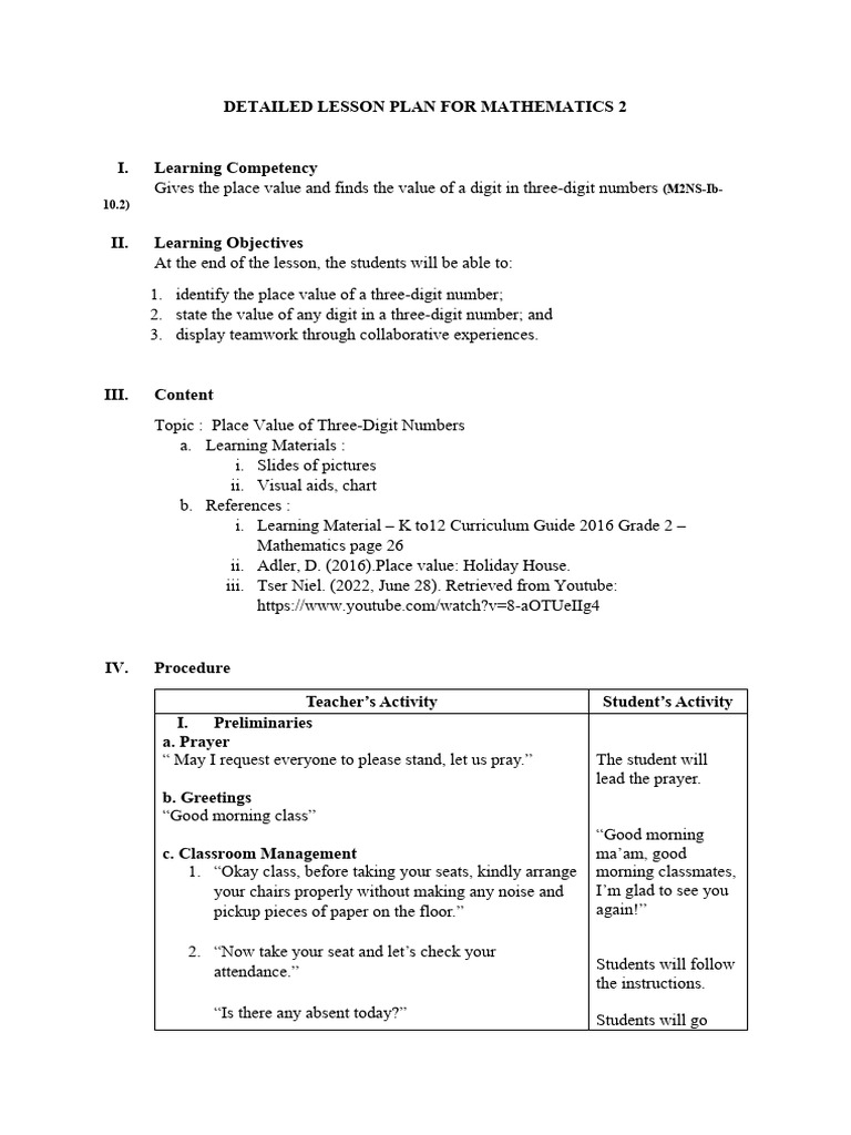 4as DETAILED LESSON PLAN IN MATHEMATICS 2 PDF